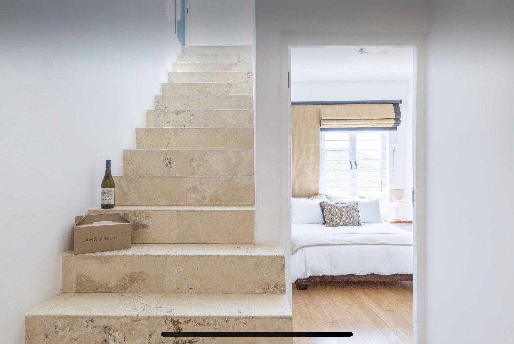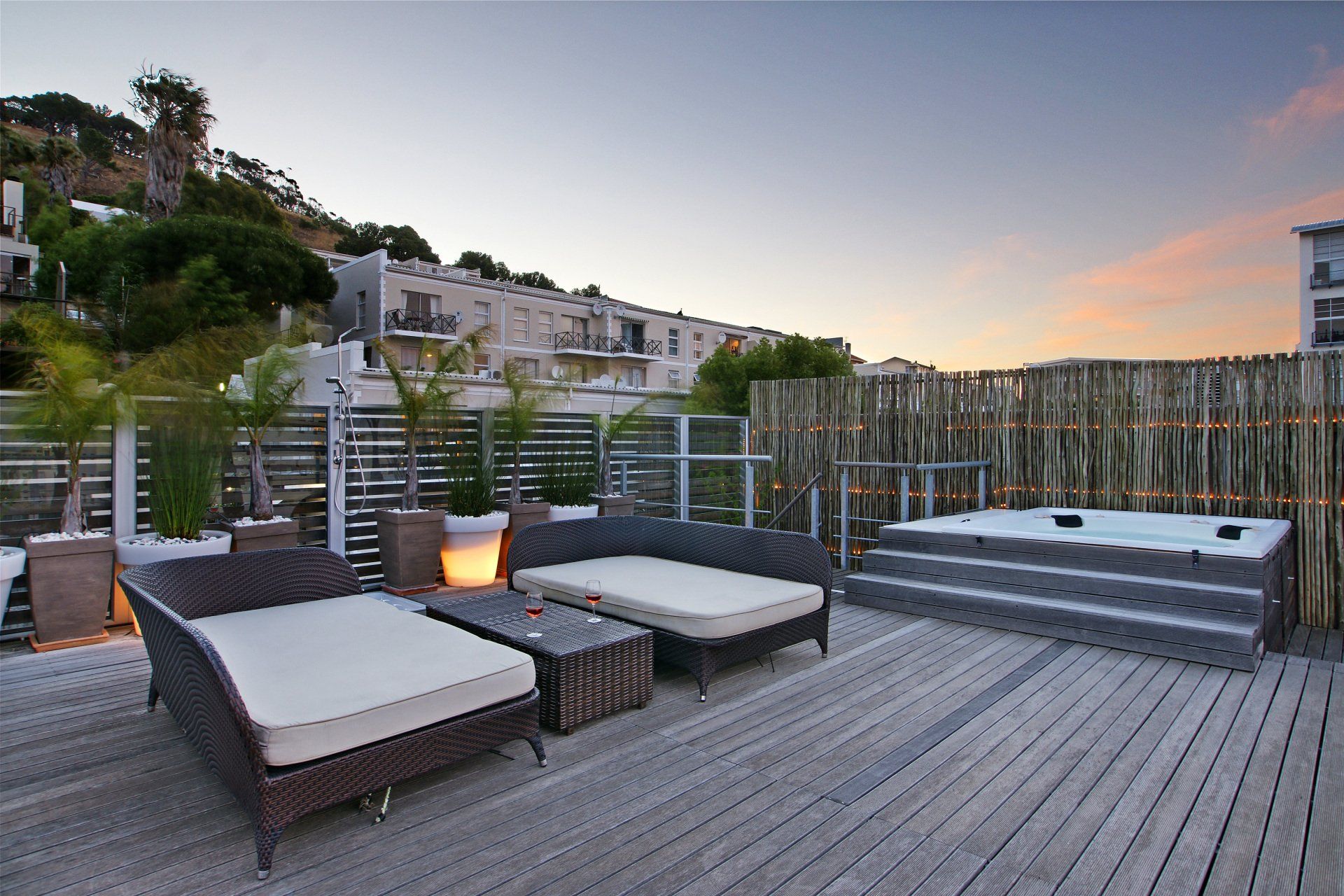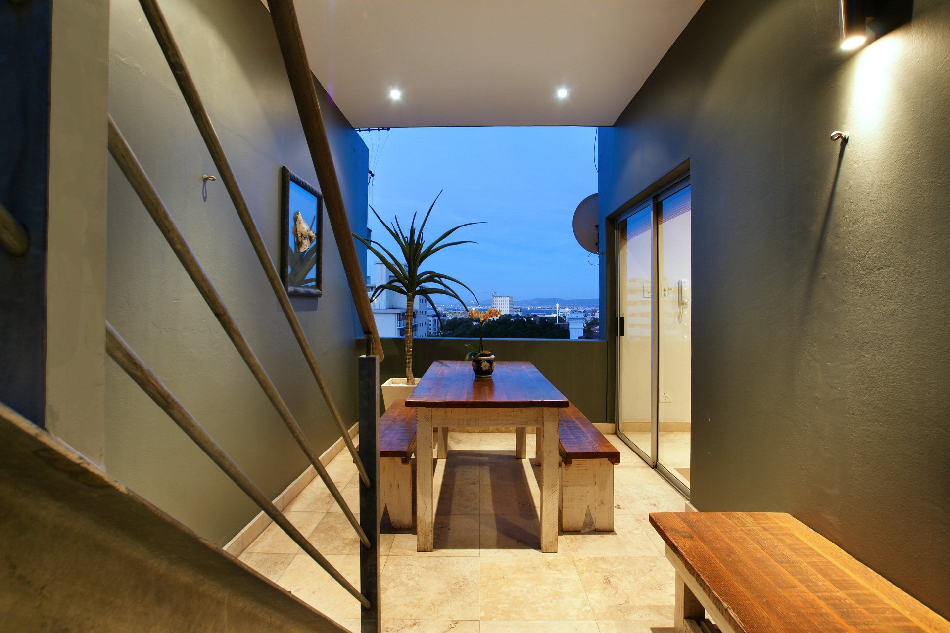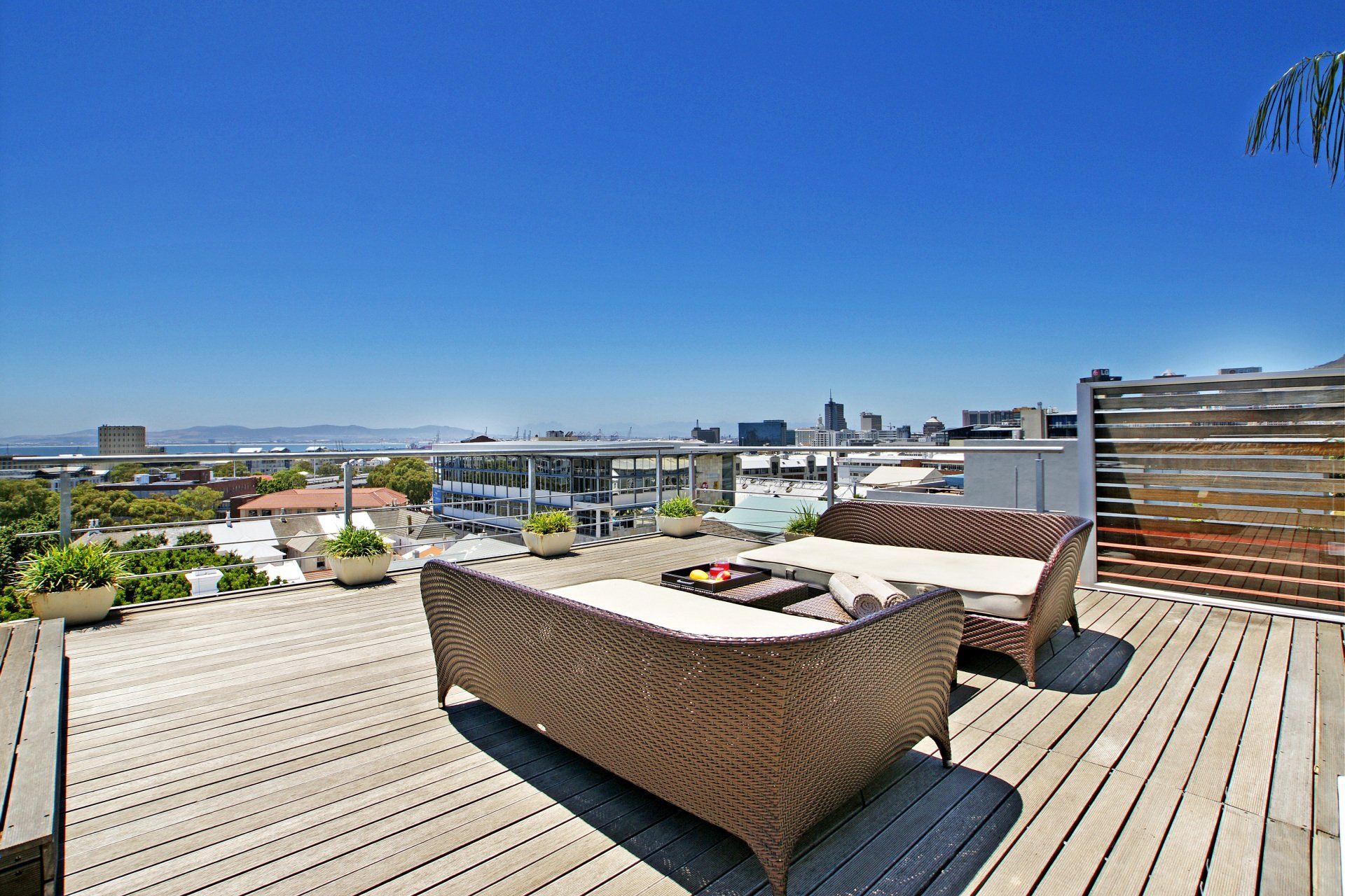 Waterkant Views is a stylish townhouse in the heart of Cape Town, yet tucked away with magnificent views of city lights and harbor. It offers accommodation for maximum 4 adults (2 en suite bedrooms downstairs). Upstairs a cosy lounge with open plan kitchen already offers wonderful harbor views through the huge bay window. A wind sheltered patio invites to braai on the Weber gas barbecue grill. On top of the house, the roof terrace offers sunshine all day long and the most amazing 360 degree views. They can best be enjoyed at night from the Jacuzzi when the city lights come to play. It’s the perfect city pad to explore Cape Town in secure walking distance to restaurants, bars, cafes and shops.